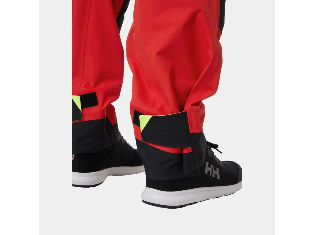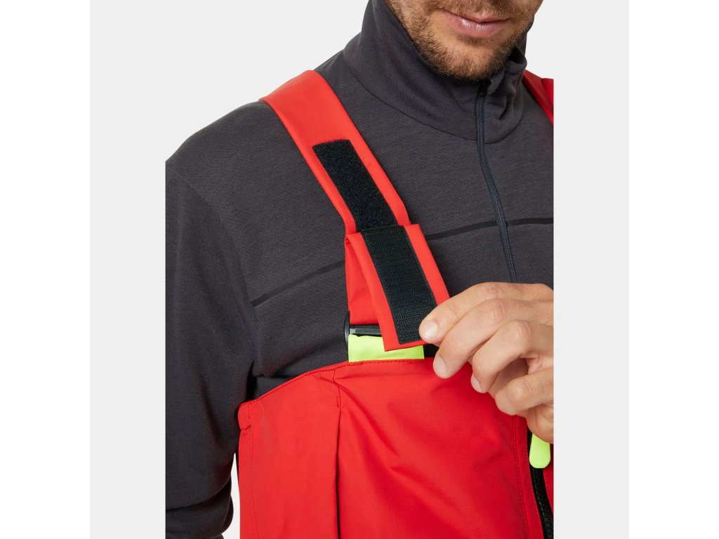 Kalhoty mají ergonomicky tvarovaná a předohnutá kolena, která podporují volnost pohybu při dynamických manévrech. Nastavitelná ramínka, pas i spodní lem nohavic umožňují přizpůsobit střih přesně na tělo a dosáhnout dokonalého komfortu při dlouhých offshore etapách. Absence bočních švů zvyšuje pohodlí a snižuje riziko oděru během aktivní práce na palubě.