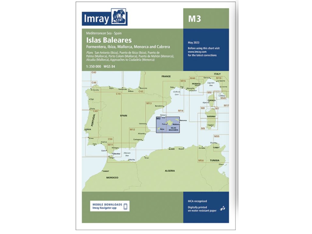Námořní mapa Imray M3 Islas Baleares je komplexní a spolehlivý navigační podklad pro plavbu v oblasti Baleárských ostrovů – tedy Ibizy, Mallorky a Menorky. Tato mapa z řady Imray M Series nabízí kombinaci aktuálních oficiálních hydrografických dat a osvědčených informací od zkušené sítě autorů Imray, díky čemuž je ideální volbou pro rekreační jachtaře i charterové kapitány.