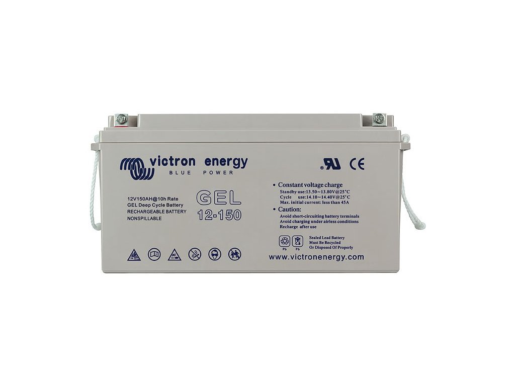 Victron 12V 165h GEL deep cycle battery. Gelové baterie mají oproti bateriím AGM delší životnost, delší servisní intervaly a jsou absolutně bezpečné proti jakémukoli úniku elektrolytu - mohou být provozovány i naležato. PARAMETRY BAT412151104 Kapacita: 150 ah @ C10, 165 ah @ C20 Rozměry: 485x172x240mm (d x h x v) Životnost: 12 let Hmotnost: 48kg. Vybíjecí proud CCA - 850A (DIN)